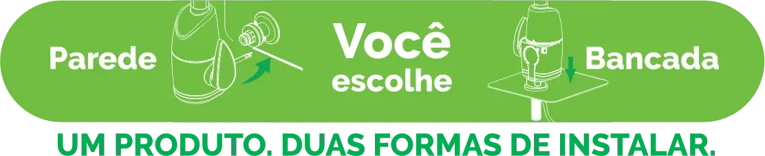 2 em 1: Instalação em bancada ou parede